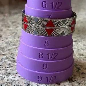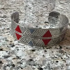 Geometric Silver and Red Cuff Bracelet ( Size 7 1/2)