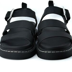 Step into comfort and edge with these Wild Fable black platform sandals in women’s size 7. Designed with a modern chunky sole, triple wide straps, and an adjustable buckle closure, these sandals combine fashion and function. The sleek black finish with white contrast stitching makes them a versatile staple for any wardrobe.