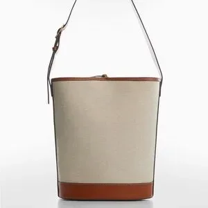 Stylish Mango bag with a cream canvas body. Accented with rich brown leather trim and strap. Perfect for everyday use.
