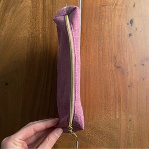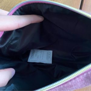 NEW Lancome Cosmetic Bag Pink Purple Glitter Canvas Gold Zip Makeup Small