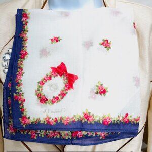 #36 Unused Christian Dior Mini scarf/handkerchief, cotton 18" x18" white pink purple floral