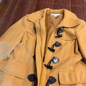 New York & Co Women’s Gold Wool Blend Jacket Coat Horn Toggles Size Medium