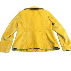 New York & Co Women’s Gold Wool Blend Jacket Coat Horn Toggles Size Medium. The coat is more gold than yellow. The latter photos are more correct. Zipper and hook toggle closure. Pockets. Lined. Great preowned condition. There are buttons under the collar not sure what they are far. Approximate measurements armpit to armpit 19 1/2 inches length 25 inches.