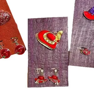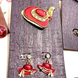 Nice fun vintage lot of brooches and earrings that pay a nice tribute to The Red Hat Society!