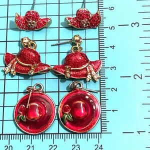 VTG Red Hat Society Jewelry Lot Liz Claiborne Enamel Hat Brooch 3 Sets Earrings