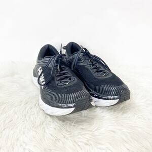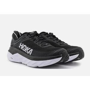Hoka One One 7.5 Womens Bondi 7 Black White Athletic Running Shoes Sneakers