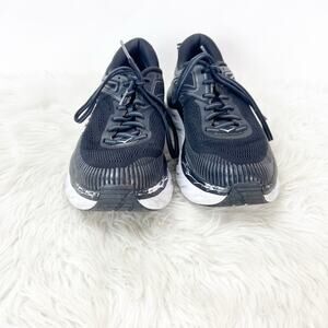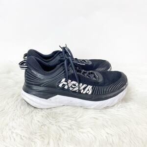 Hoka One One 7.5 Womens Bondi 7 Black White Athletic Running Shoes Sneakers Lace-up Sport