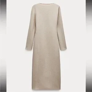 New ZARA Long Sleeve Bouclé Wool Dress ZW Collection