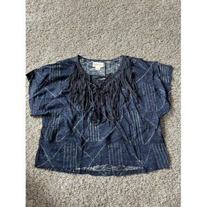 Demin & Supply Ralph Lauren Fringe Lace up V neck Top Boho Hippie Size Small