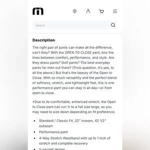 Travis Mathew Open to Close black Pants 30