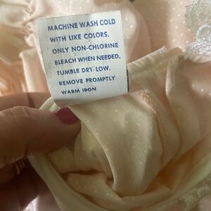 Charming pink dress featuring a white lace collar. Perfect for special occasions.