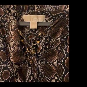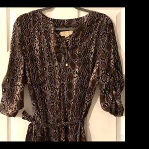 Michael Kors, super cute snake print dress, detail chain in front, button up sleeves, tie waist, size large. In excellent condition, like new!
