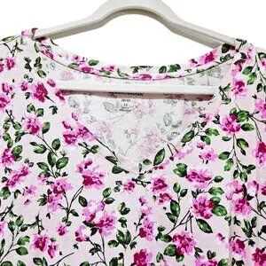 New PINK BLOSSOM VINE FLORAL V-NECK SHORT SLEEVE TEE 5X SPRING SUMMER