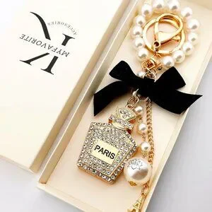 Paris Perfume Bottle Pearl Crystal Keychain Bag Charm
