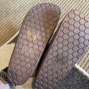 Chic slides with dual white buckles. Ideal for everyday comfort. Size US 7. Purple metallic.