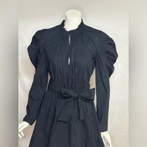 Ulla Johnson Size 8 Puffy Sleeve Tie Elegant Black Women's Dress