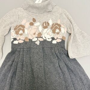Janie And Jack Dress Size 18 To 24 Months Grey Floral Pattern Turtle Neck Dress