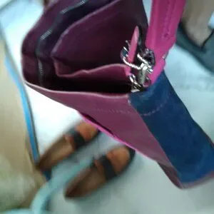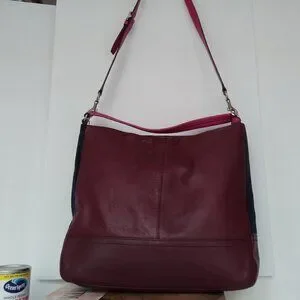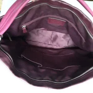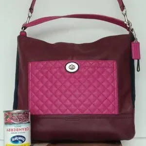 * Quilted fushia leather outer pocket with silver turn clasp closure.