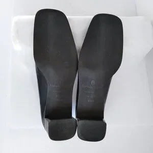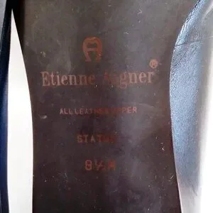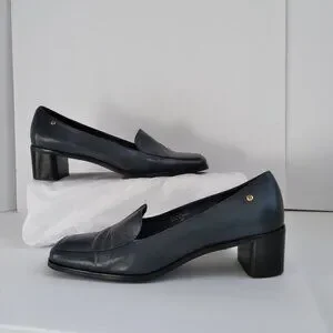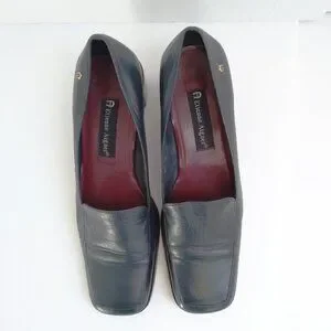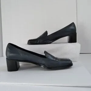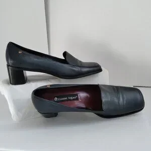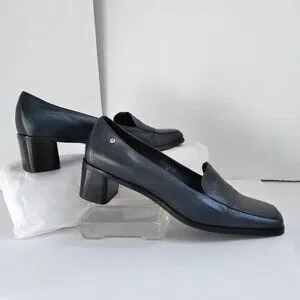 Etienne Aigner 90's Navy Leather 'Status' Slip On Square Toe Block Heel Shoes Sz 8.5