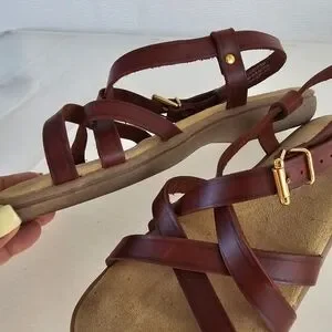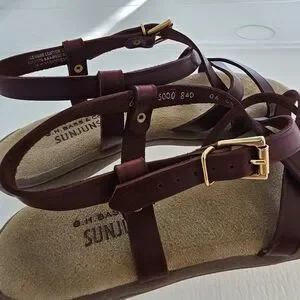 Step out in style with the G.H. Bass & Co. Sunjuns size 6 sandals. These brown sandals offer comfort and casual look for any occasion. Spring, summer, casual, brown, leather, tan, gold.