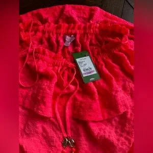 Bright pink skirt with drawstring detail. Perfect for casual outings.