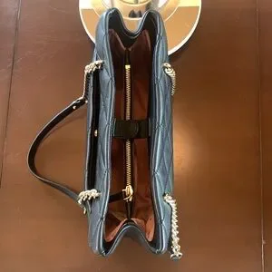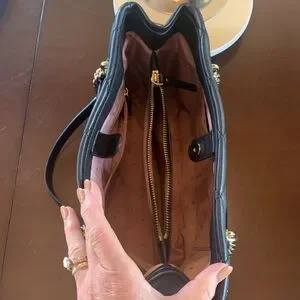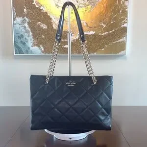 EUC Kate Spade Emerson Place black quilted shoulder bag with gold tone hardware and logo. Soft black leather structured bag with black stitching. Magnetic snap closure opens to 2 open compartments separated by one medium zip compartment. Interior also features 2 slip pockets and one additional zip pocket. Exterior features one slip pocket perfect for your phone. Classic all season bag that never goes out of style. No callouts. Interior, exterior, corners, bottom, straps, magnetic snap, zippers, and zipper pulls all in excellent condition.