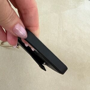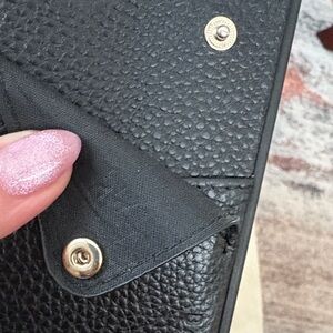 Sleek black leather phone case by Bandolier. Features gold hardware for a chic touch. Ideal for stylish protection.
