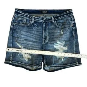 Judy Blue Women’s Sz 1X Distressed High Rise Denim Shorts Dark Wash Stretch