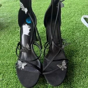 Step out in style with these elegant black heels featuring stunning butterfly embellishments. Perfect for any occasion, these shoes add a touch of sophistication to your outfit.