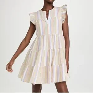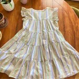 Roller Rabbit 100% cotton Rainbow Striped Ruffle Sleeve Dress size XS
