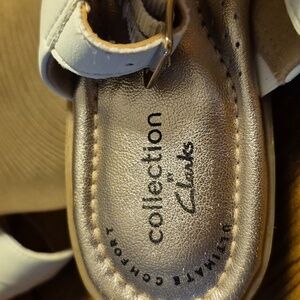 Clarks Collection Reyna Glam Flat Sandal In White. Women's Size 5