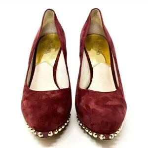 MICHAEL Michael Kors Maroon Suede Gold Stud Almond-Toe Pumps - Size 9