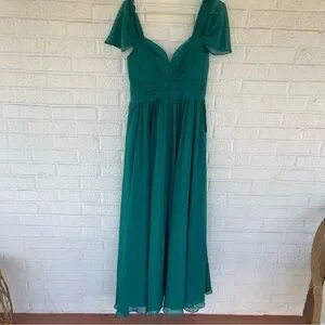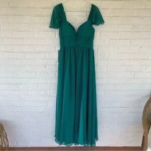 NEW Azazie Womens Bridesmaid Dress Lianne Jungle Green Long Chiffon Size A6 NWT