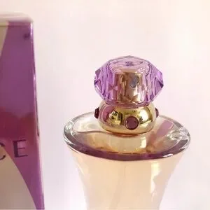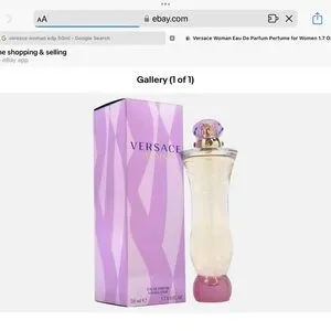 Versace Woman Eau de Parfum in a 50ml bottle. Features a pink and purple design.