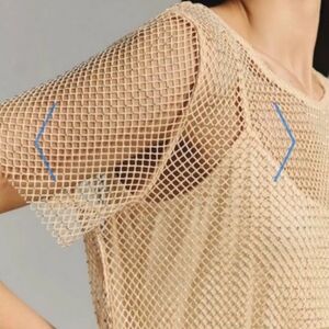 Sunday In Brooklyn Anthropologie Light Peach/Beige Elegant Mesh Rhinestone Top
