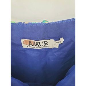 AMUR Blue and Green Floral Midi Dress