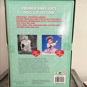 Charming I Love Lucy doll in a purple dress. Features curly red hair and a white lace apron.