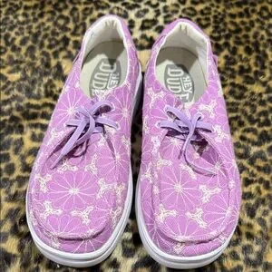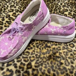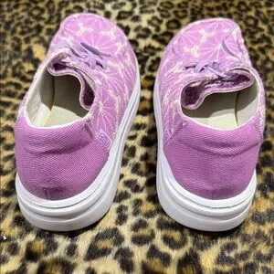 Charming lavender sneakers with floral pattern. Lightweight and comfy.