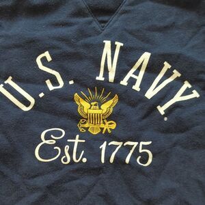 Youth Champion navy blue crew neck pullover sweater with US Navy Est 1775 graphic. Size large.