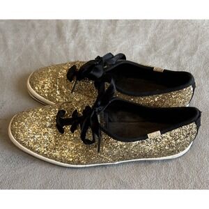 Keds By Kate Spade New York Gold Sneakers Sz 9.5 M Glitter Sparkle Satin Laces