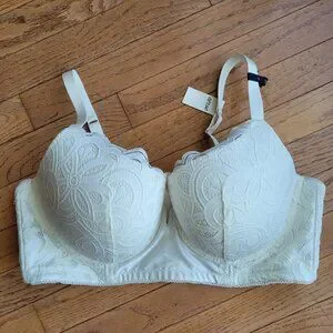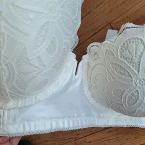 Elegant cream lace bra. Delicate floral design. Adjustable straps.
