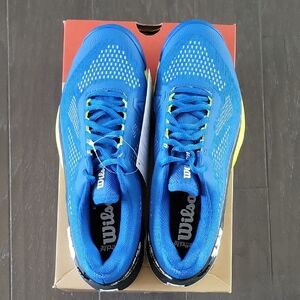 Rush Pro 4.0 Dynamic blue Wilson TENNIS shoe with striking yellow details. Ideal for active lifestyles.