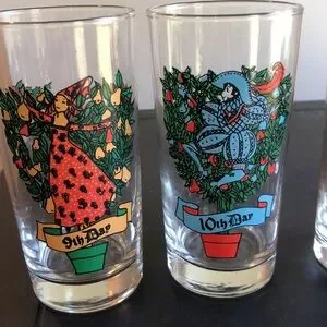 Vintage 1970’s Indiana Glass 12 Days of Christmas Drinking Tumblers COMPLETE SET