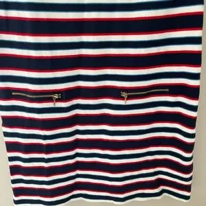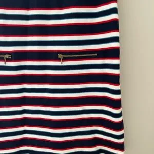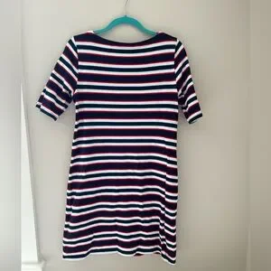 Chic navy and red striped dress. Features a classic design. Ideal for everyday wear. Great condition. Very comfy! Size medium! Pockets in the front!