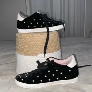 Black and White Sneakers with Pearl Accents