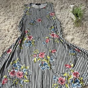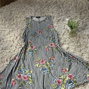 Black and white striped floral dress with a scoop neck and short sleeves. Size large. #floral #spring #summer #springdress #summervibes