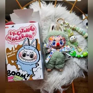 custom hand painted clown labubu with handmade charms, authentic from popmart