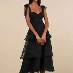 Lulus Glamorous Sweetie Black Burnout Tie-strap Bustier Midi Dress - Size L