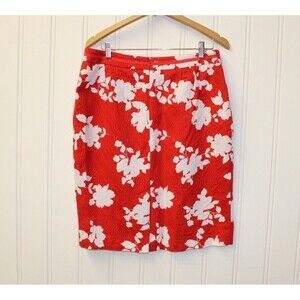 Talbots Red & White Tropical Flowers Knee Length Skirt Back Zip Career Size 12