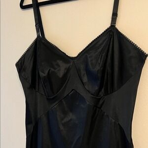 Komar Vintage Chemise Classic Nylon Slip Plus Size Black Nightgown Nightie XL